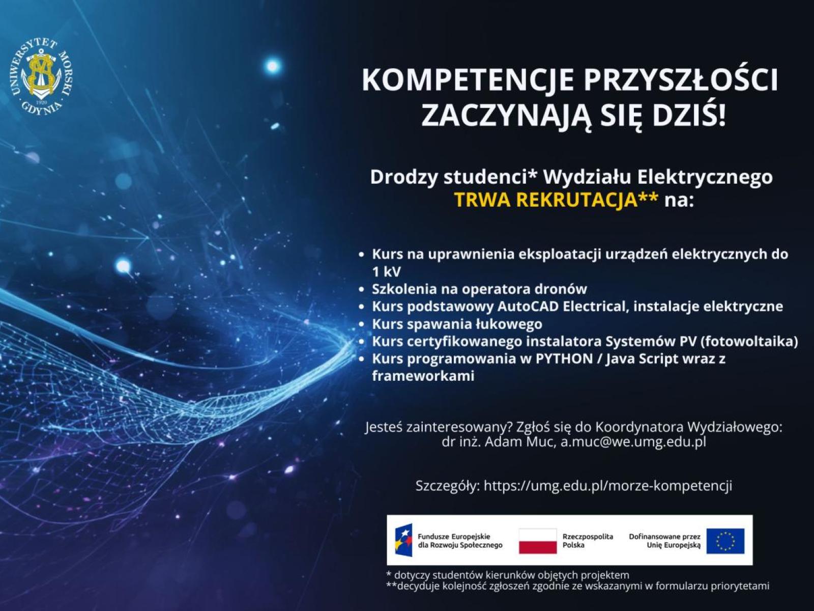 Drodzy studenci* Wydziału Elektrycznego zapraszamy do wzięcia udziału w rekrutacji** na kursy i szkolenia: