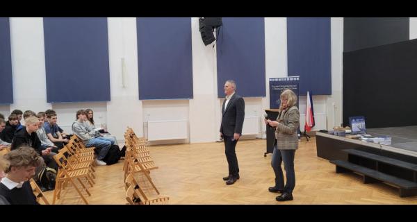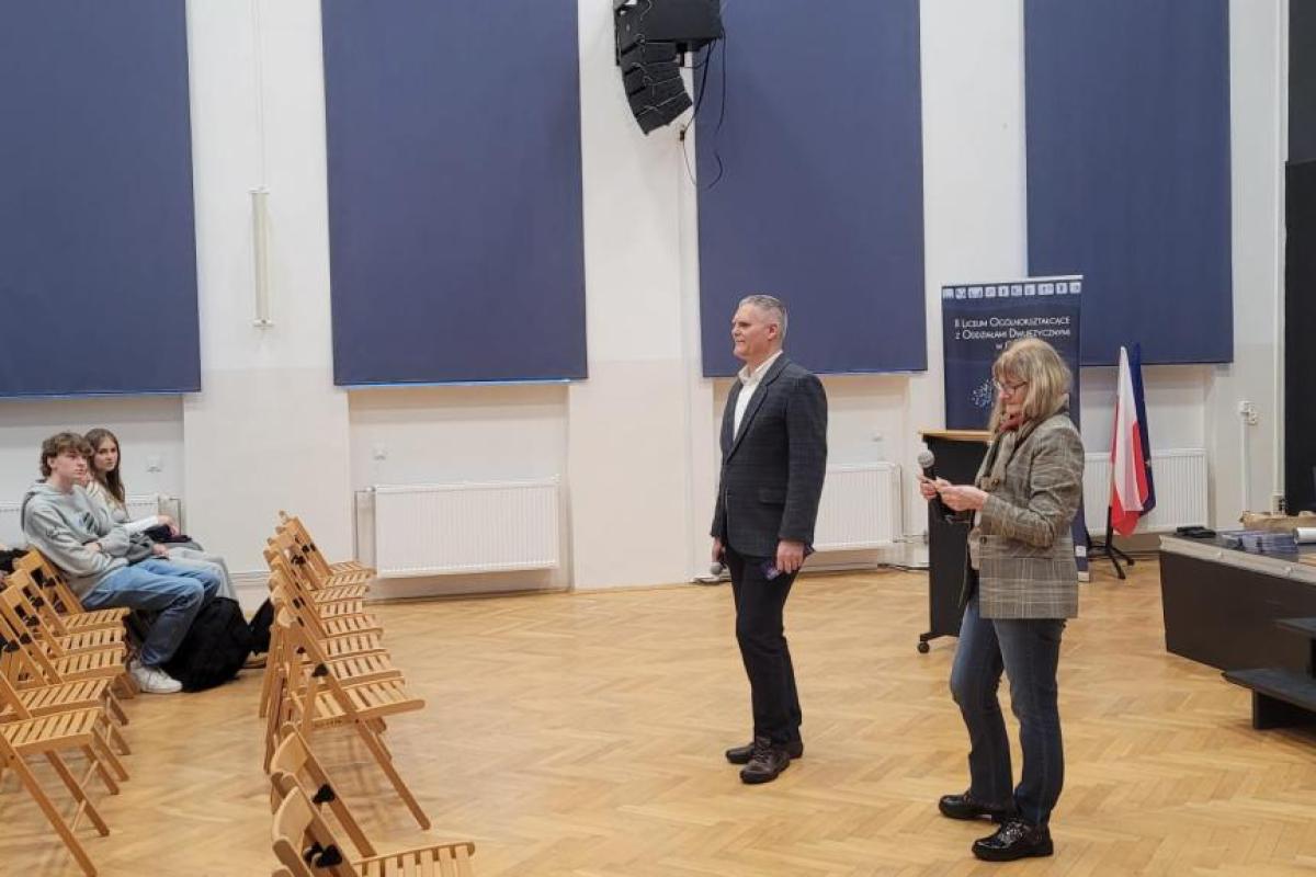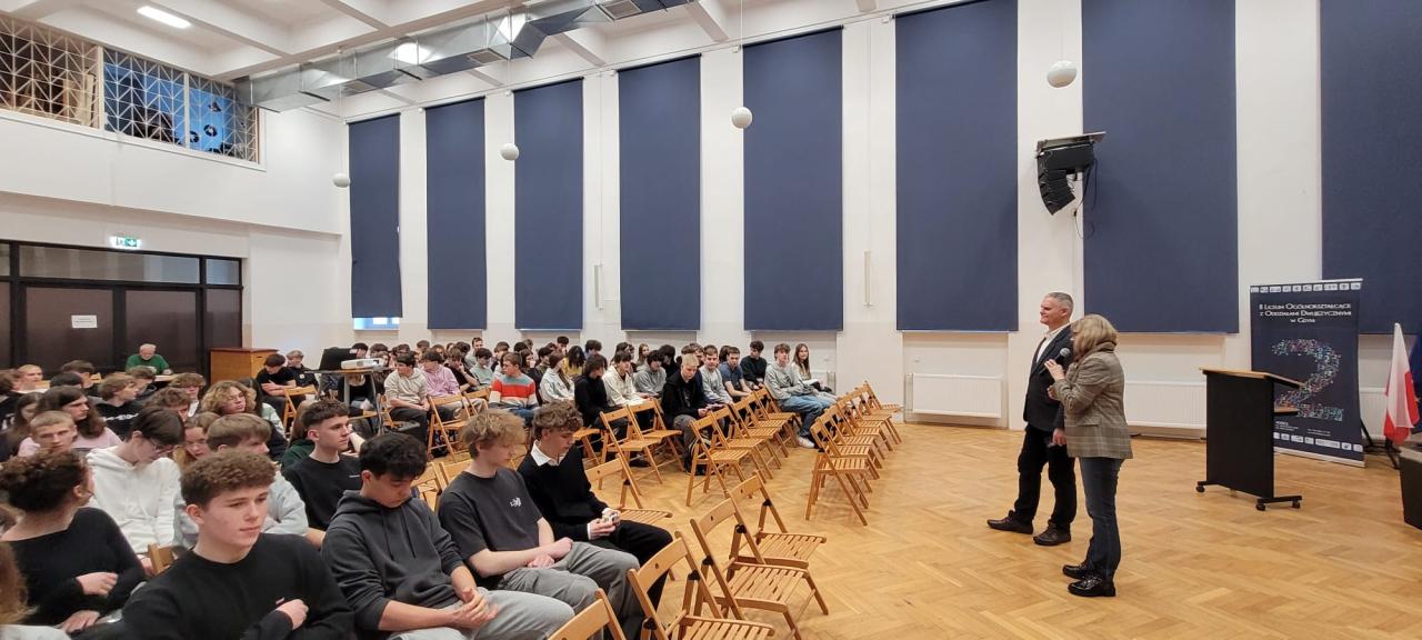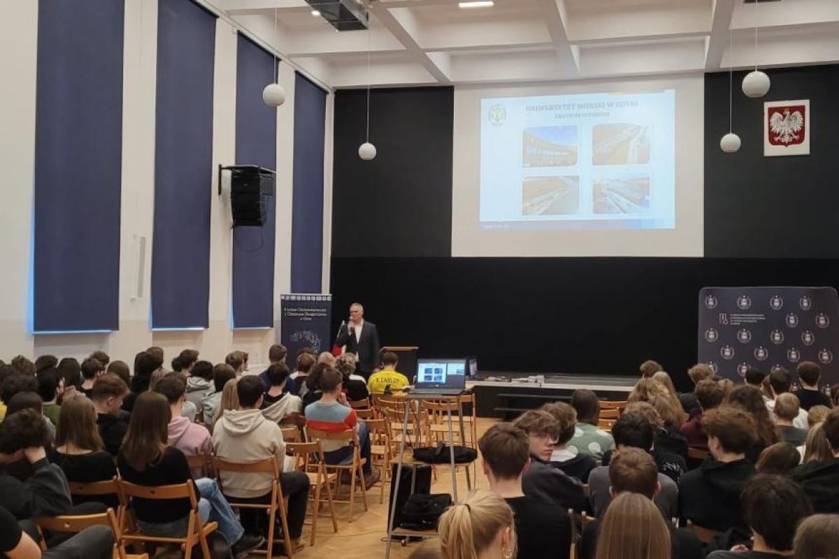 25 lutego 2026 r. przedstawiciele Wydziału Elektrycznego Uniwersytetu Morskiego w Gdyni – Katedry Odnawialnych Źródeł Energii i Elektromobilności oraz Koła Naukowego EVPL (mgr inż. Krzysztof Kwella i mgr inż. Wojciech Koznowski) – spotkali się z uczniami klas maturalnych II LO z Oddziałami Dwujęzycznymi im. Adama Mickiewicza w Gdyni.